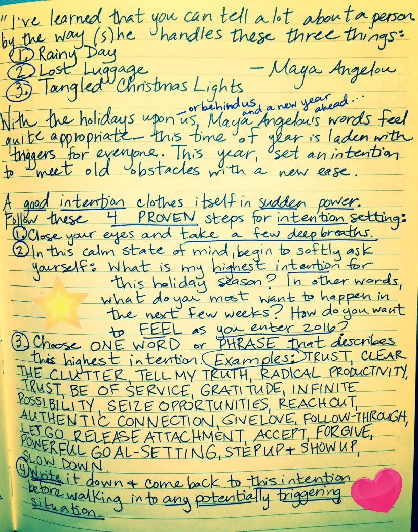 I follow Project Happiness on Facebook, Twitter and Instagram. They post the most useful centering thoughts for my daily life. Almost everyday they post something that speaks to me. This is from the end of December. I love it.